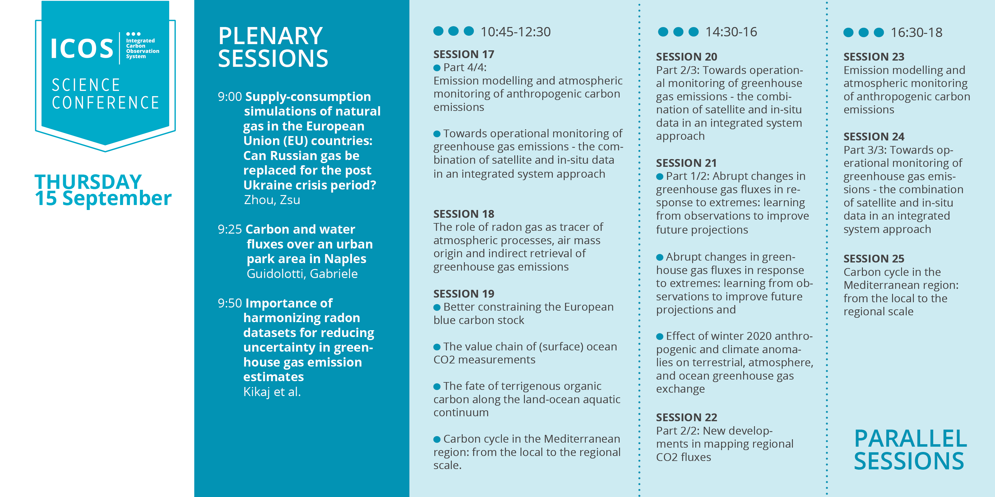 On this page you will find the most up to date programme of the ICOS Science Conference 2022. The programme is organised around 8 themes all under the overarching theme of "Tracking progress to carbon neutrality". You can read more about each theme and subtheme on the Session Themes page or about the Programme Committee here.